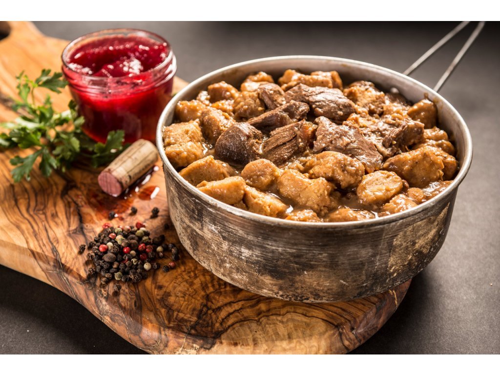 | Jelenie ragú so zemiakovými knedličkami | 400 g | 3 ks |