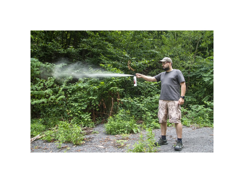 Maximálny dosah: Sprej vytvára oblak dráždivých látok do 10 metrov a približne 4 m širokú clonu, ktorá zastaví aj rozbehnutého medveďa.